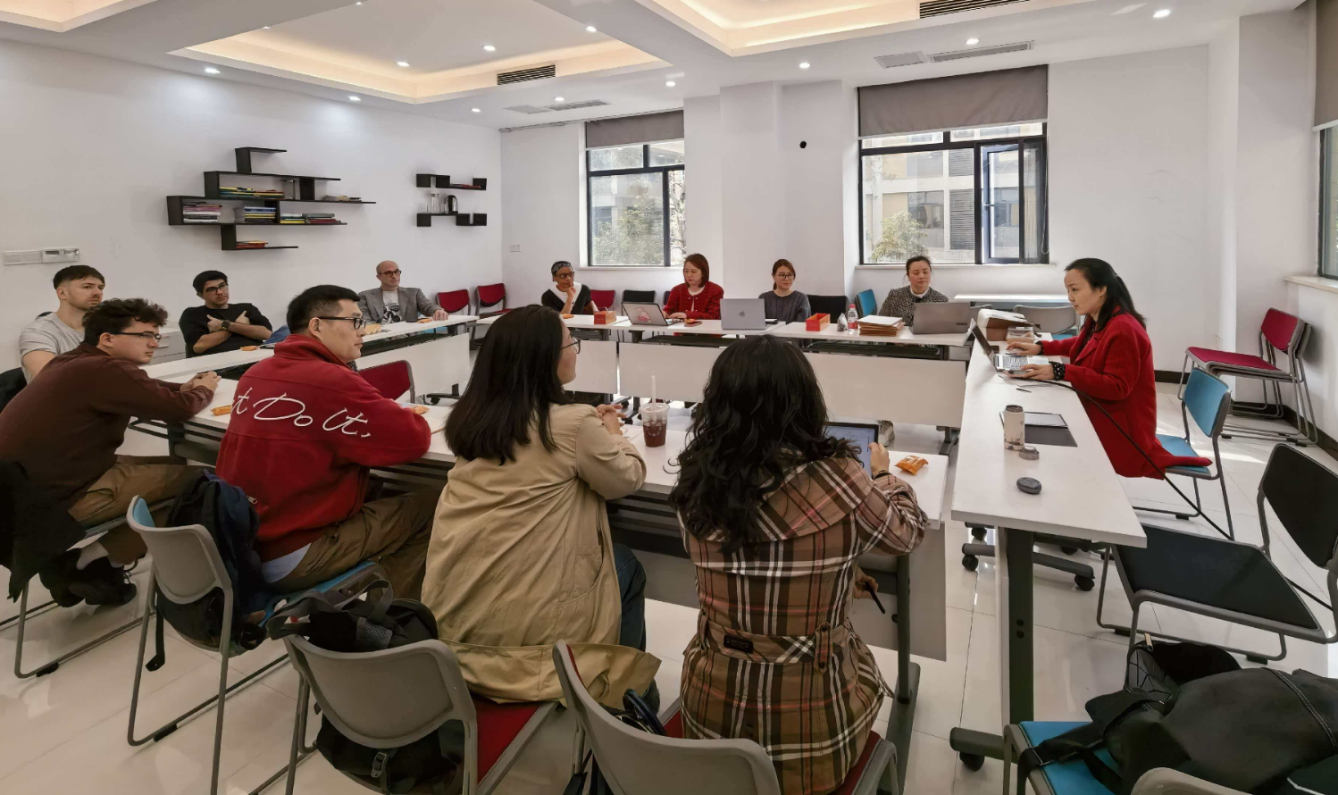 2026年3月5日下午,大学外语创新课程组在大外中心422会议室召开了本学期第一次教研会议。本次会议由课程负责人郭丽静老师主持,全体教师齐聚一堂,围绕新学期教学任务、AI技术赋能外语教学及教师角色定位等议题展开了深入研讨。郭丽静老师首先对新学期的教研工作进行了总体部署,并向全体教师介绍了本学期加入课程组的新成员,毕业于新加坡国立大学的郑可文博士,以及英籍教师Jordan和美籍外教Patrick。他们的加入为创新课程组注入了新的活力与多元视角。目前创新课程组由10名中国教师和6名外籍教师组成,共同在全校1000余名学生中开展基于项目式的英语教学。由团队共同打造的大学英语教材获批第二届全国教材建设奖优秀教材二等奖1项,国家级“十四五”规划教材1项。