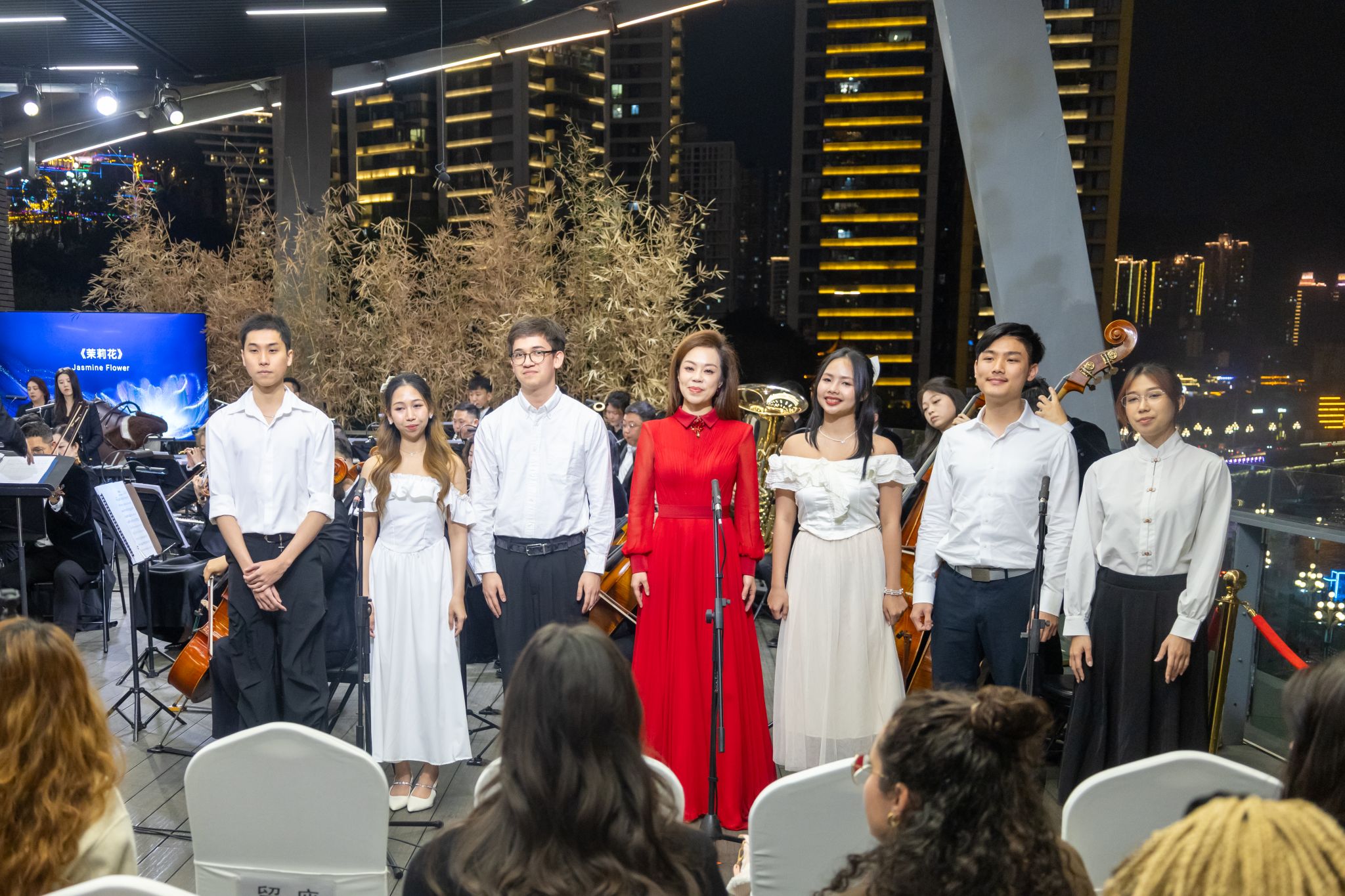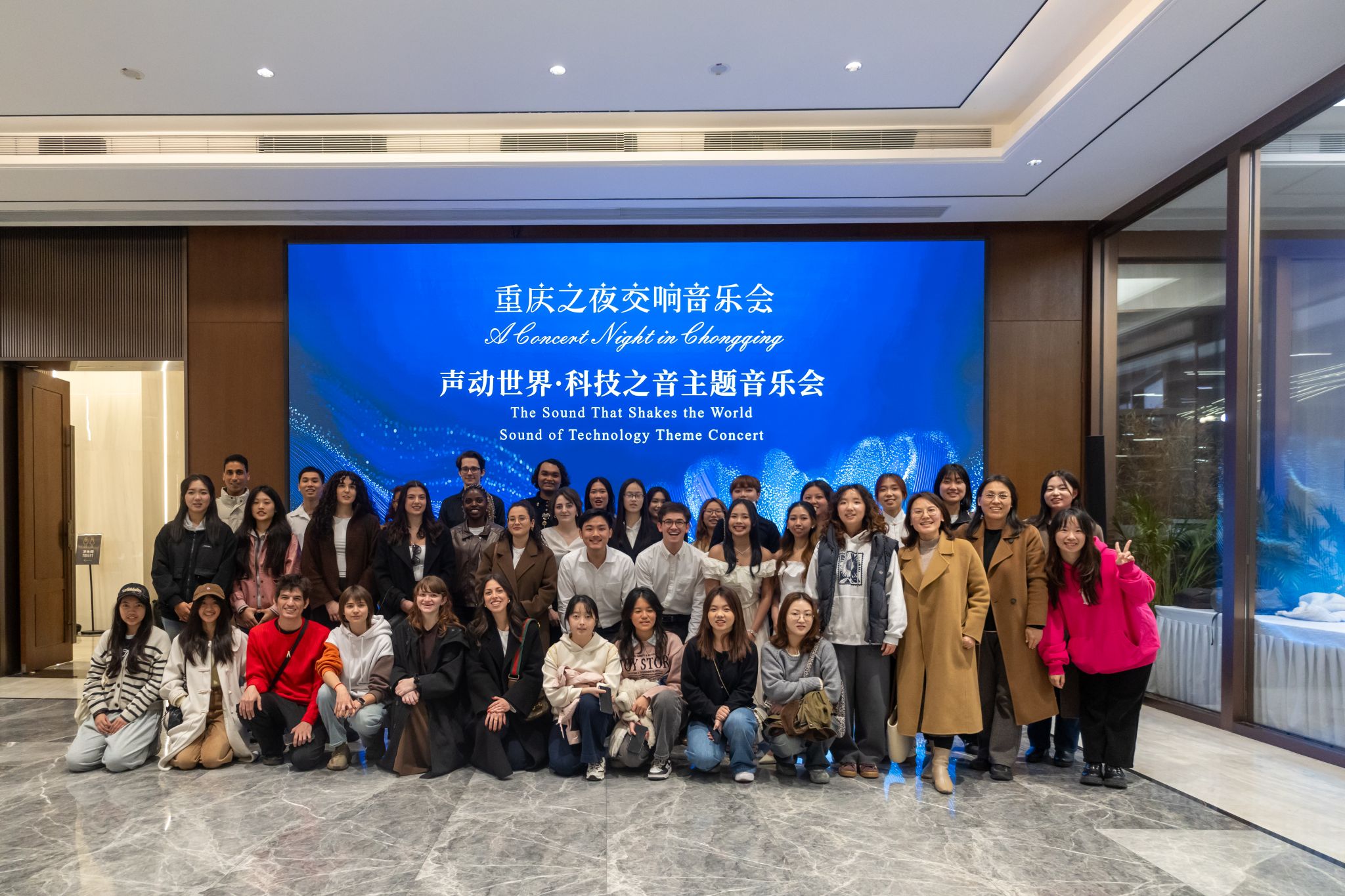 为扎实推进《理解重庆》课程实践教学,深化校地合作育人实效,我院于3月21日晚组织师生赴重庆国际会客厅参加“声动世界·科技之音”主题交响音乐会。活动现场,留学生与歌唱家同台献唱《茉莉花》,在沉浸式文化体验中提升跨文化沟通能力,切实将调研成果转化为育人实效。