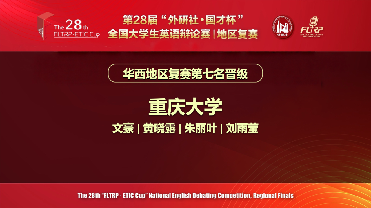 2026年4月18日-19日,第28届“外研社•国才杯”全国大学生英语辩论赛华西赛区复赛在线上举行,重庆大学两支队伍荣获金奖并晋级国赛,其中2人荣获最佳辩手,创下我校在该赛事地区赛成绩的历史新高。
