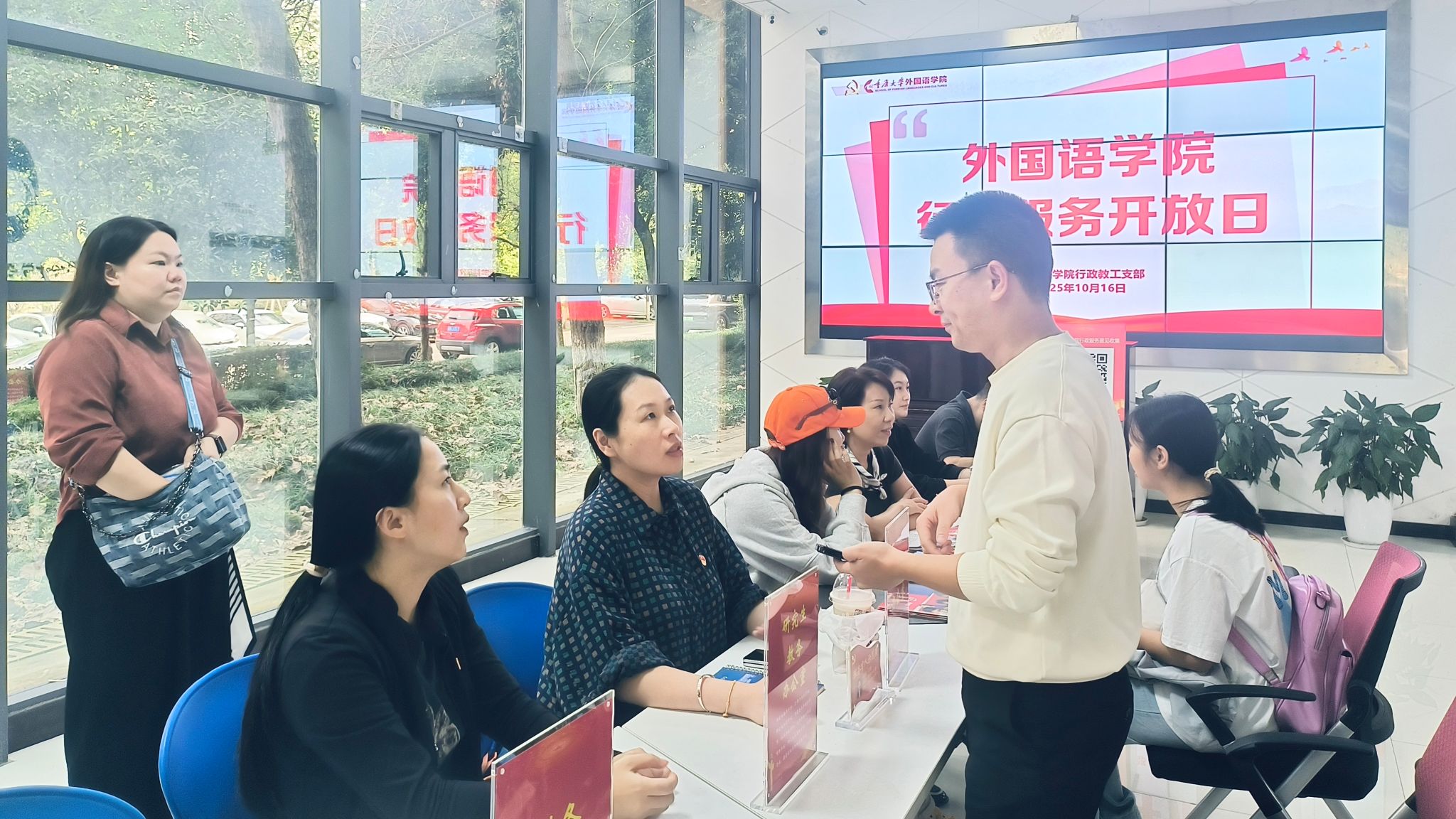 行政教工党支部于10月16日下午举办“行政服务开放日”活动。此次活动旨在搭建一个学生与学院行政各科室直接沟通的平台,面对面解答学生的各类疑问,直观展示学院资源与服务,帮助学生更高效地解决在学习和生活中遇到的实际问题。