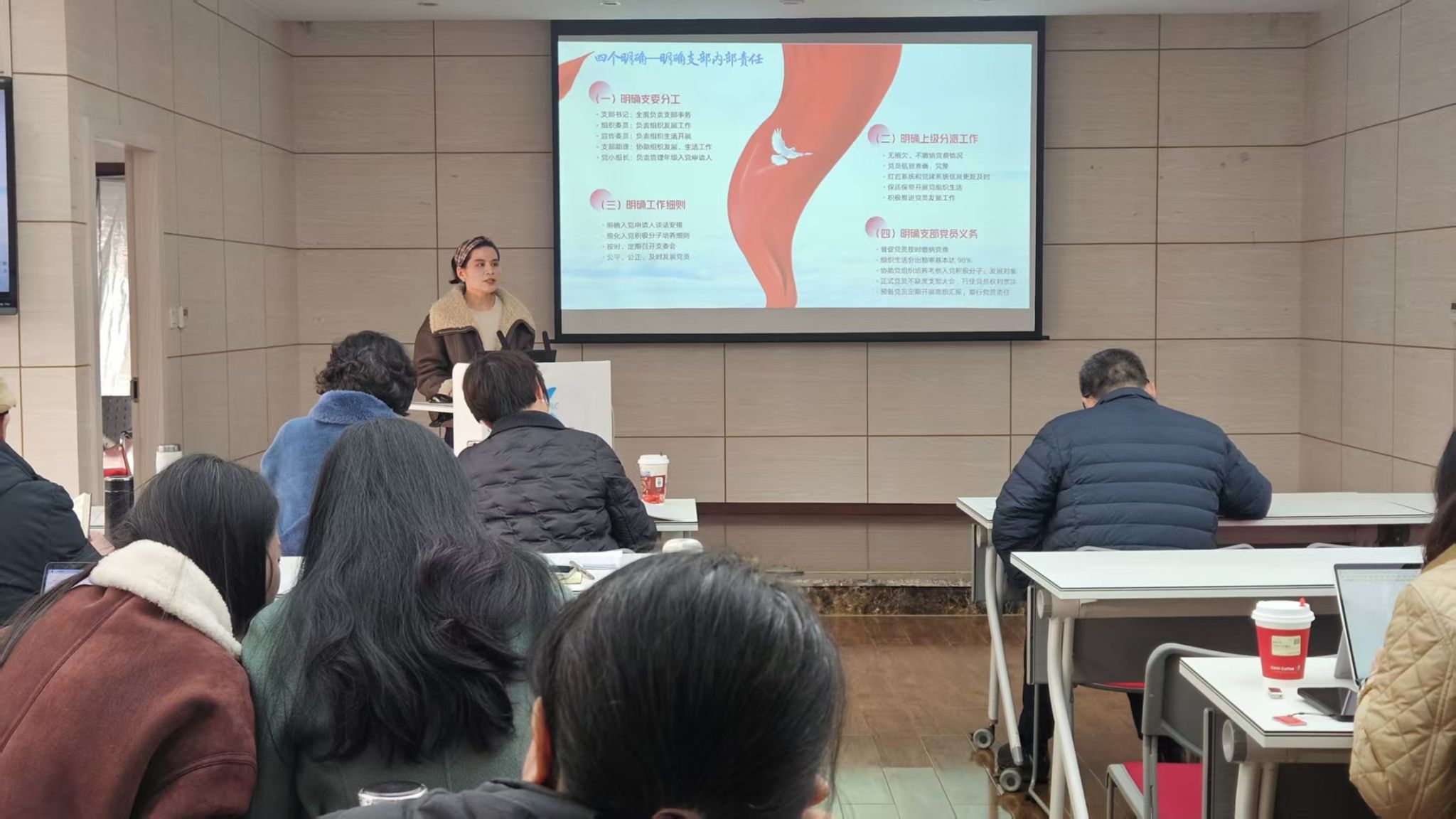 各位支部书记秉持求真务实的工作作风,就所在支部过去一年的党建工作开展情况、特色亮点、存在不足进行了全面详实的汇报。汇报聚焦 “一支部一品牌”建设,重点围绕思想政治建设、党员教育管理、党员发展等关键工作进行,同时结合实际对2026年党建工作方向和举措作出了清晰规划。